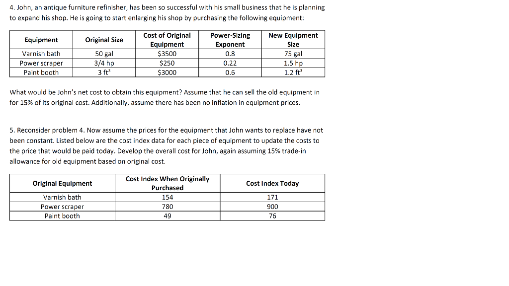 Solved 4 John An Antique Furniture Refinisher Has Been Chegg Com