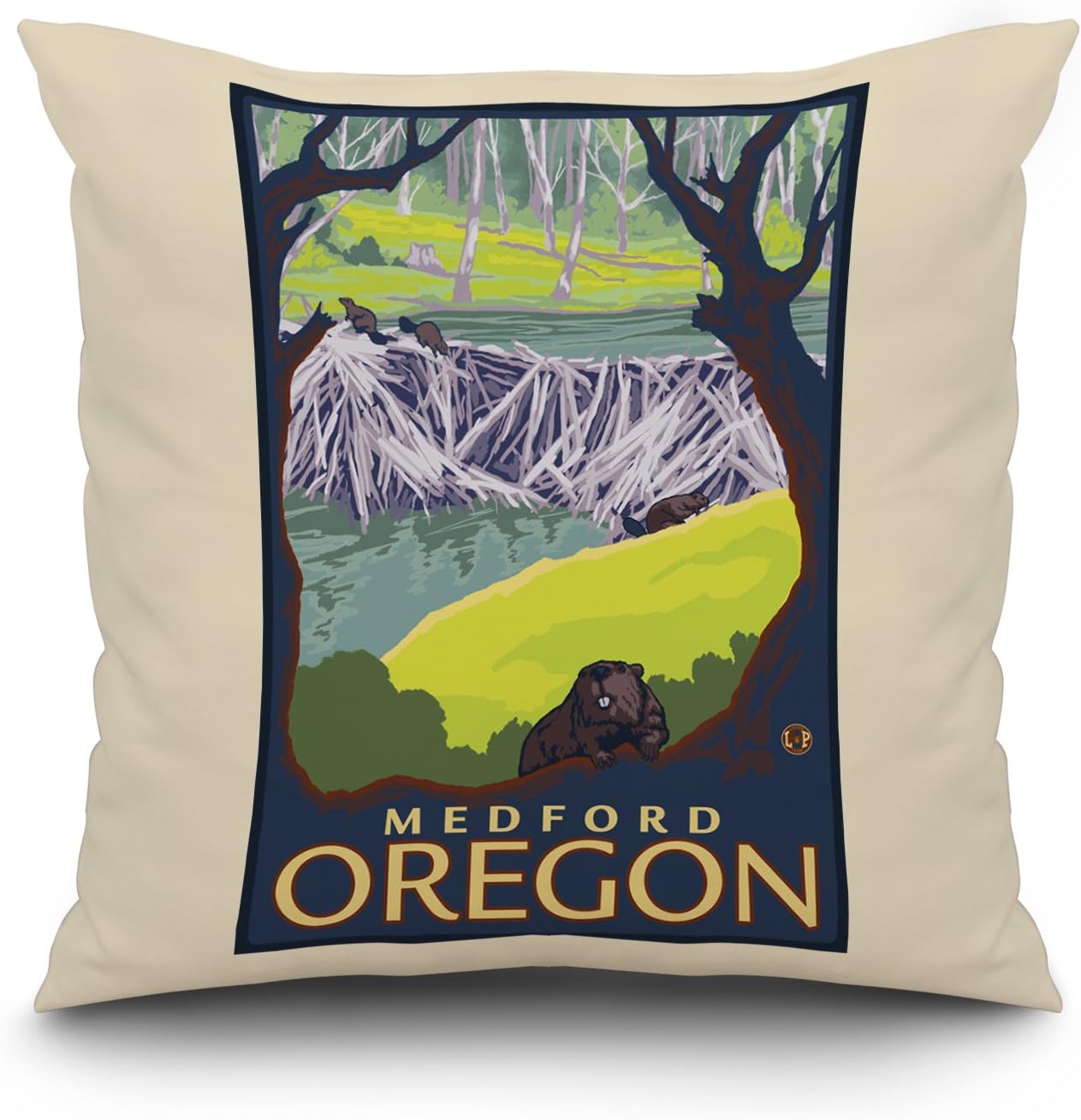 Amazon Com Lantern Press Beaver Family Medford Oregon 20x20 Spun Polyester Pillow White Border Wall Art