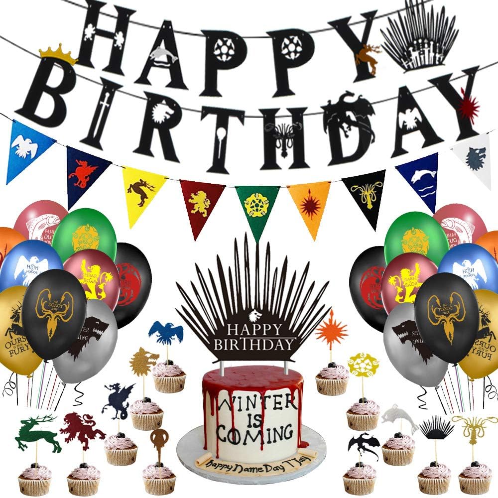 Amazon Com Col Party Game Of Thrones Birthday Banner Got Banner Cake And Cupcake Toppers Balloons For Got Birthday Party Supplies Decorations 63pcs In All Toys Games