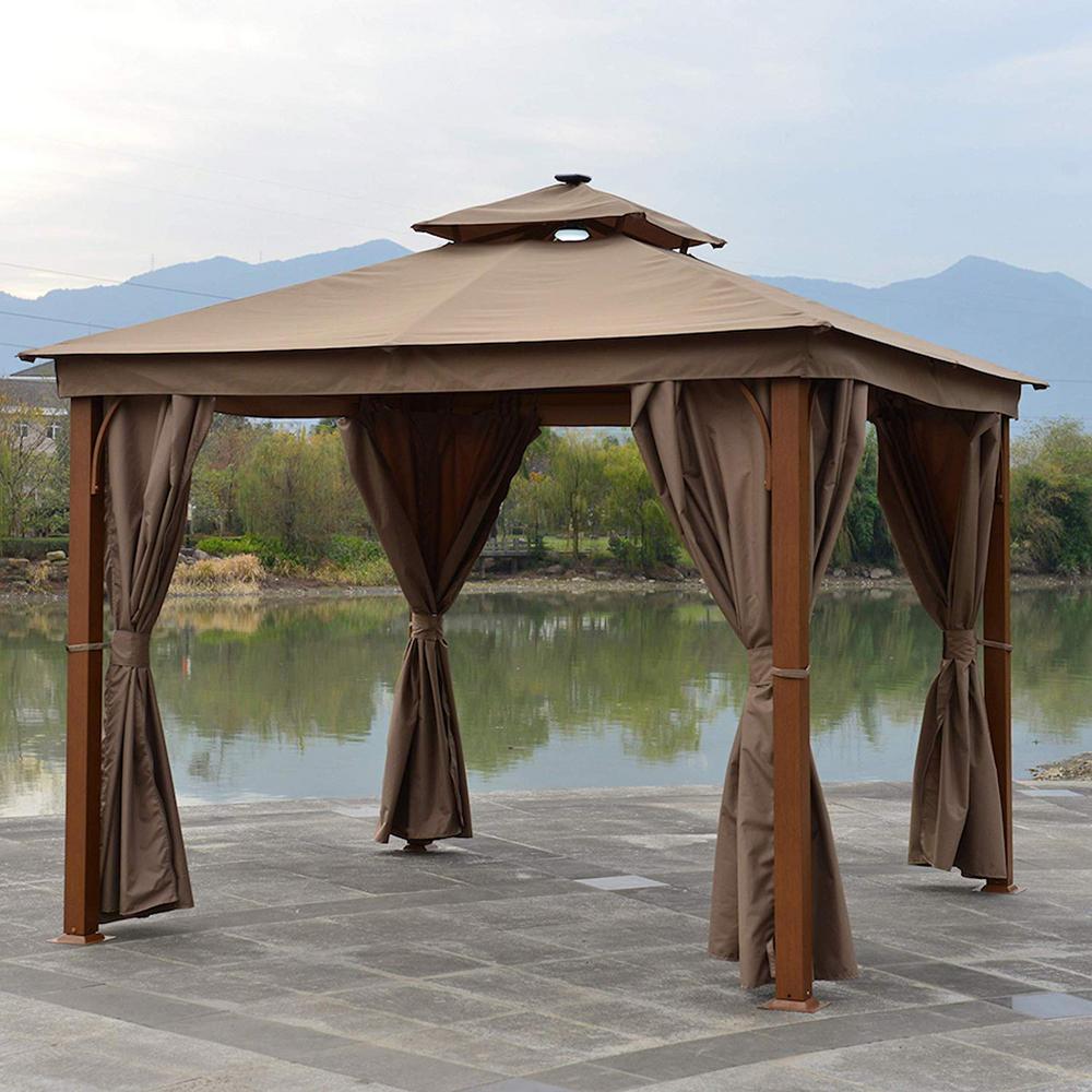 Aleko 10 Ft X 10 Ft Aluminum Gazebo With Wooden Finish Sand Curtain Gzc10x10w Hd The Home Depot
