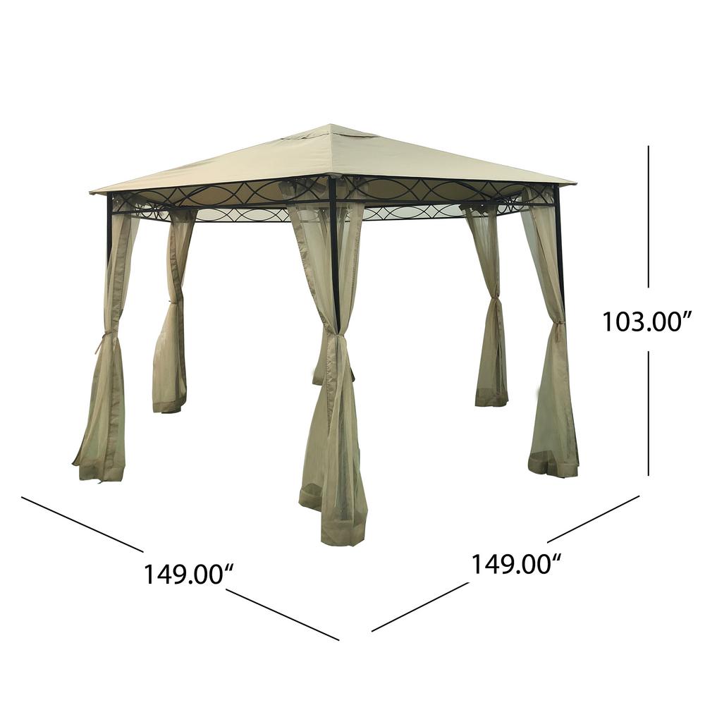 Sunjoy Bourbon 13 Ft X 13 Ft Brown Steel Gazebo With 2 Tier Tan And Brown Dome Canopy And Mosquito Netting A101011800 The Home Depot
