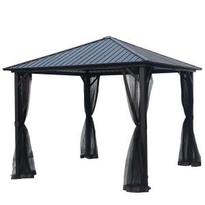 Hampton Bay 10 Ft X 10 Ft Holden Outdoor Patio Black Hard Top Galvanized Steel Gazebo Tpgaz9011 The Home Depot