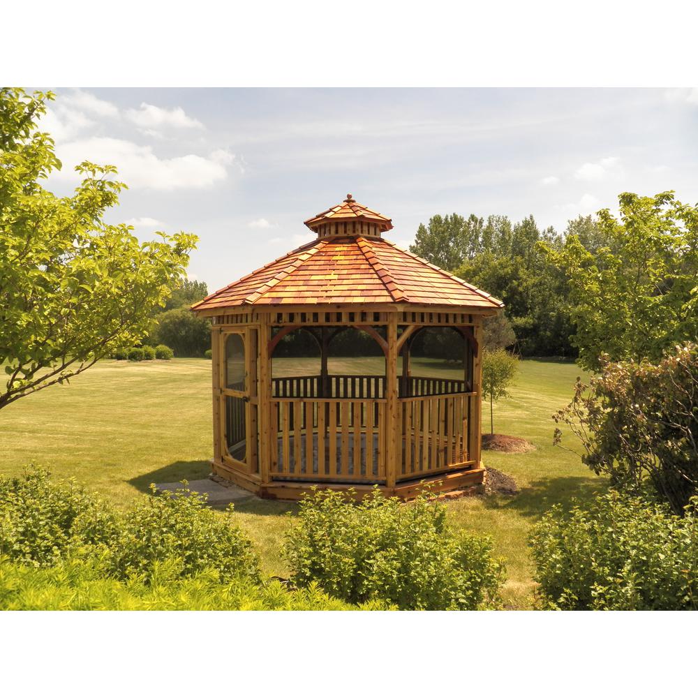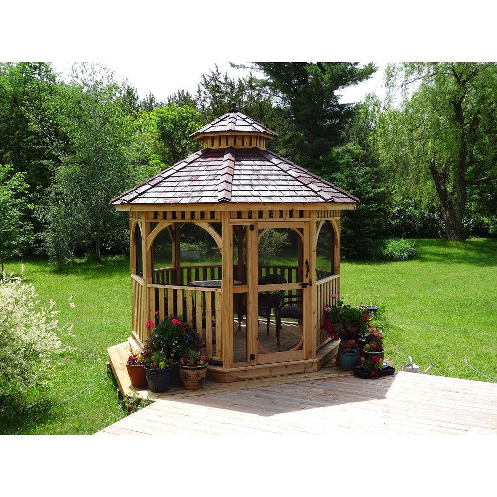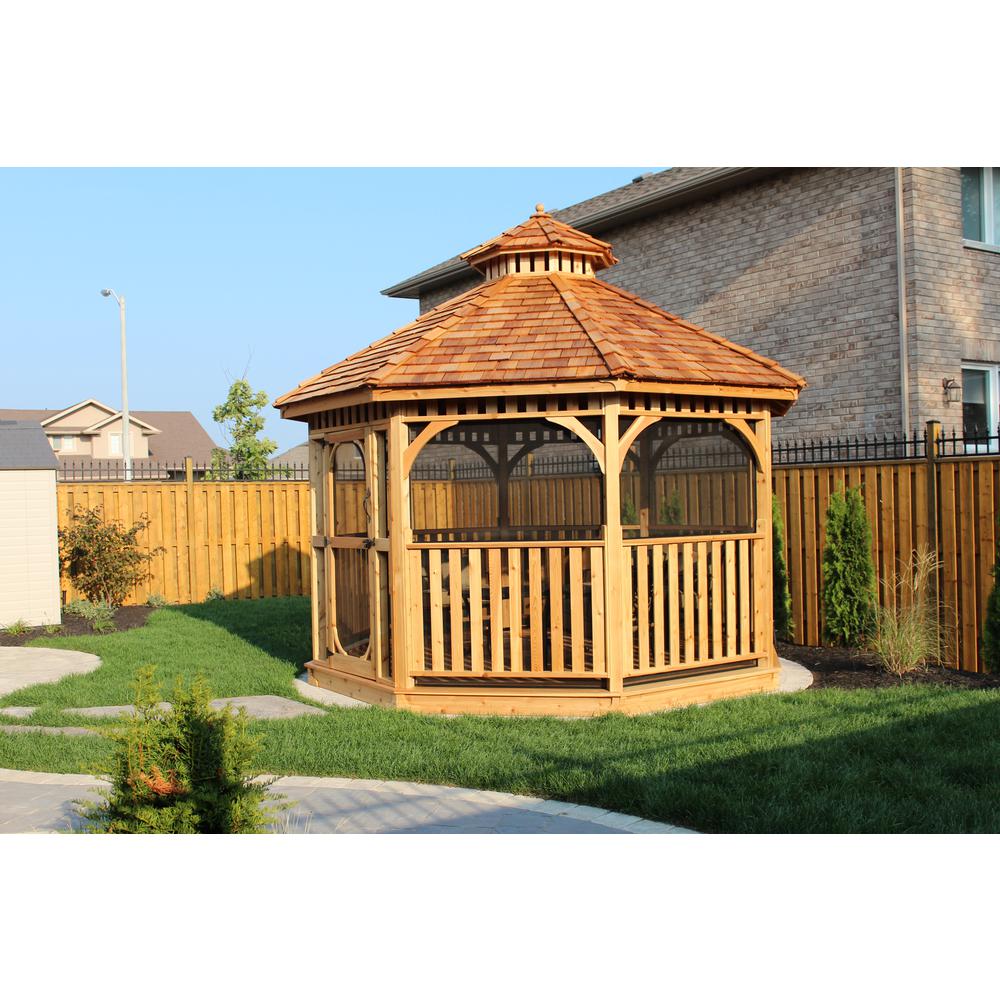 Outdoor Living Today 12 Ft Bayside Cedar Octagon Gazebo With Screen Kit Bayside12gosk The Home Depot