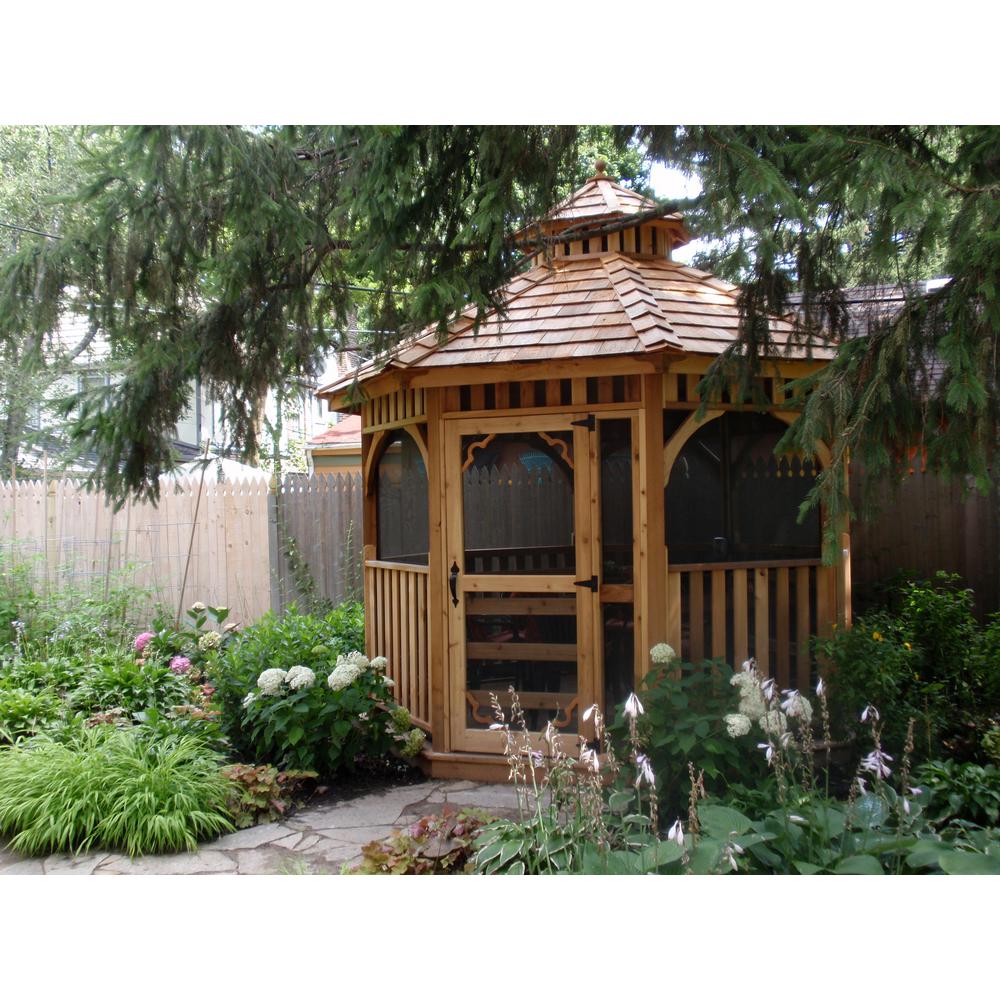 Outdoor Living Today 10 Ft Bayside Cedar Octagon Gazebo With Screen Kit Bayside10gosk The Home Depot