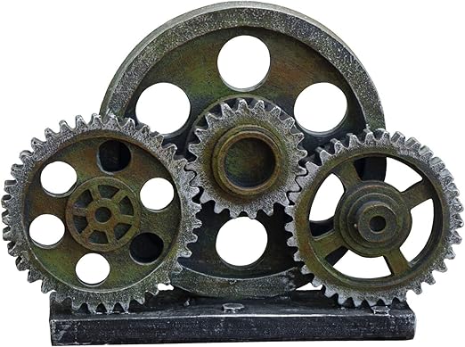 Amazon Com Rmdusk Industrial Steampunk Gear Train Figurine Cog Wheel Statue Resin Model Home Bar Decor Ornament 7 7 H Green Patina Home Kitchen