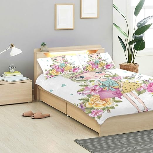 Amazon Com Lonsant Beautiful Duvet Cover Set Beautiful Cute Young Cartoon Girl Design Bedding Decoration Twin Xl Size 3 Pc Sets 1 Duvets Covers With 2 Pillowcase Microfiber Bedding Set Bedroom Decor Accessories