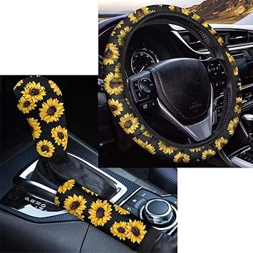 Cute Car Gear Shift Knob Cover Hand Brake Cover For Women And Girls Yr Car Gear Shift Cover Set Car Accessories For Women Sunflower Knobs Interior Accessories