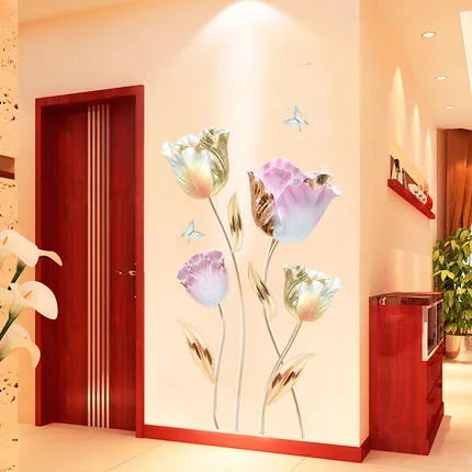 Tulips Wall Stickers 3d Flower Wallpaper Vsco Girl Room Decor Aesthetic Living Room Bedroom Decoration Fridge Wallstickers Art Buy At The Price Of 9 29 In Aliexpress Com Imall Com
