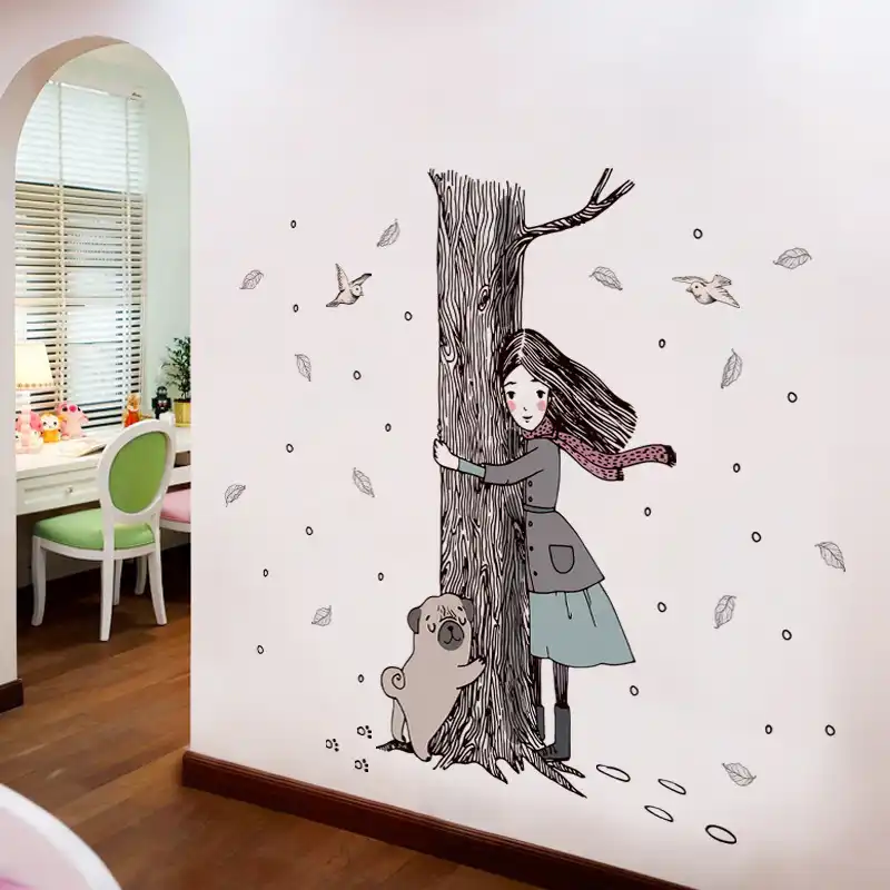 Mega Sale E1aaf1 Girl And Dog Wall Stickers Diy Lovely Animal Vsco Girl Room Decor Aesthetic Kids Rooms Childern Bed Room Wallstickers Wallpaper Cicig Co