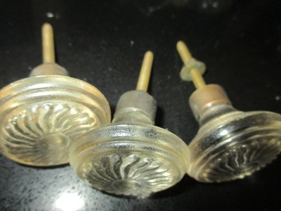 Antique Vintage Hardware Lot Of 3 Clear Glass Decorative Door Knobs Ebay
