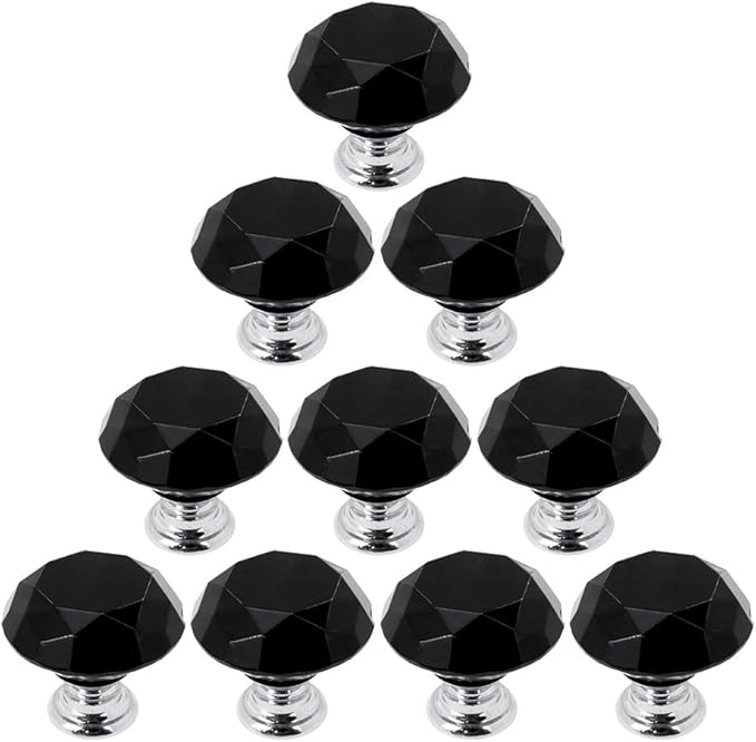 Geesatis 10 Pcs Crystal Glass Black Cabinet Knobs Diamond Shape Knobs Retro Style For Home Decorative Cabinet Closet Bedroom Bathroom Kitchen Door Knobs With Mounting Screws Crystal Black Amazon Com