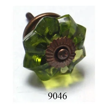 Cast Iron Decorative Door Knob Acrylic Glass Knob Pull Green Antique Finish