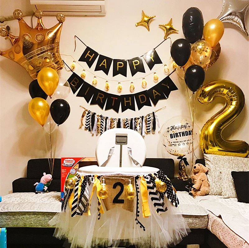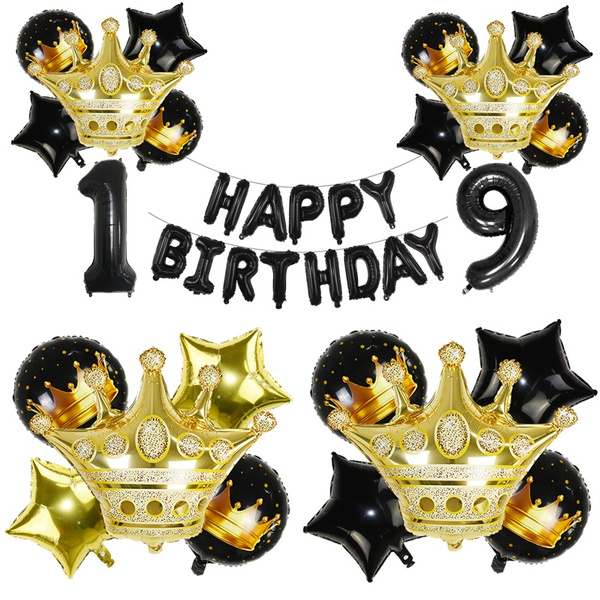 Amazon Com Birthday Party Decorations Kit Happy Birthday Banner Gold Crown Balloon Gold And Black Latex Balloons Perfect Party Supplies Health Personal Care