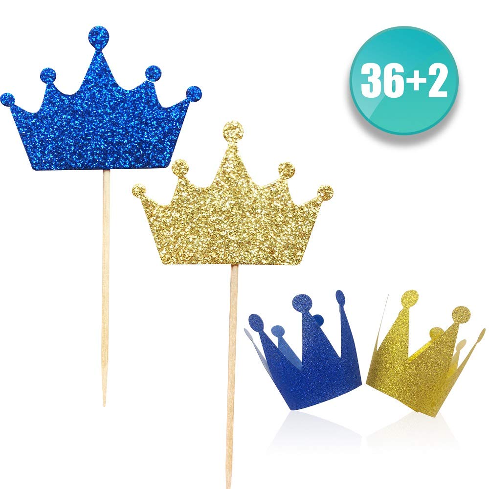 Royal Prince Cupcake Toppers For Birthday Baby Shower Wedding Party Decorations Supplies 2 Alissar Wxy Kapoklife 36 Pack Blue And Gold Crown Picks Wine Cellars