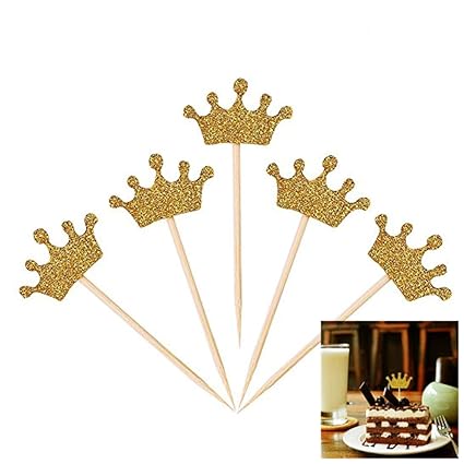 Hokpa Gold Crown Cupcake Toppers With Blue Ribbon Boy Birthday Decorations Royal Prince Kids Gathering Diy Home Theme Party Food Fruit Cake Picks For Baby Shower Decor 20pcs Gold Buy Online In Belize
