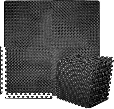 Amazon Com Puzzle Exercise Mat With 12 Tiles Interlocking Foam Gym Mats 24 X 24 Eva Foam Floor Tiles Protective Flooring Mats Interlocking For Gym Equipment Black Sports Outdoors