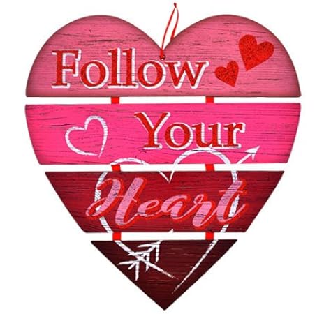 Amazon Com Valentine S Day Follow Your Heart Wall Plaques Home Decor Decoration Red And Pink Wooden Heart Wall Decorations 10 5 In Home Kitchen