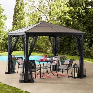 Sojag 10 Ft D X 10 Ft W Genova Aluminum Gazebo With Galvanized Steel Roof Panels And Mosquito Netting 500 9165036 The Home Depot