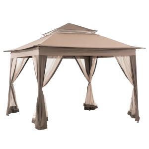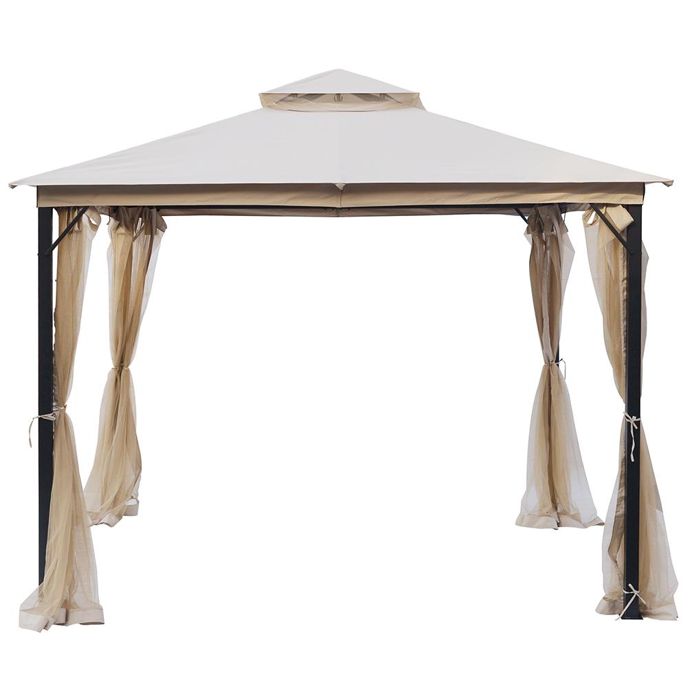 Sunjoy Nikkie 10 Ft X 10 Ft Steel Gazebo With 2 Tier Khaki Canopy A101011000 The Home Depot