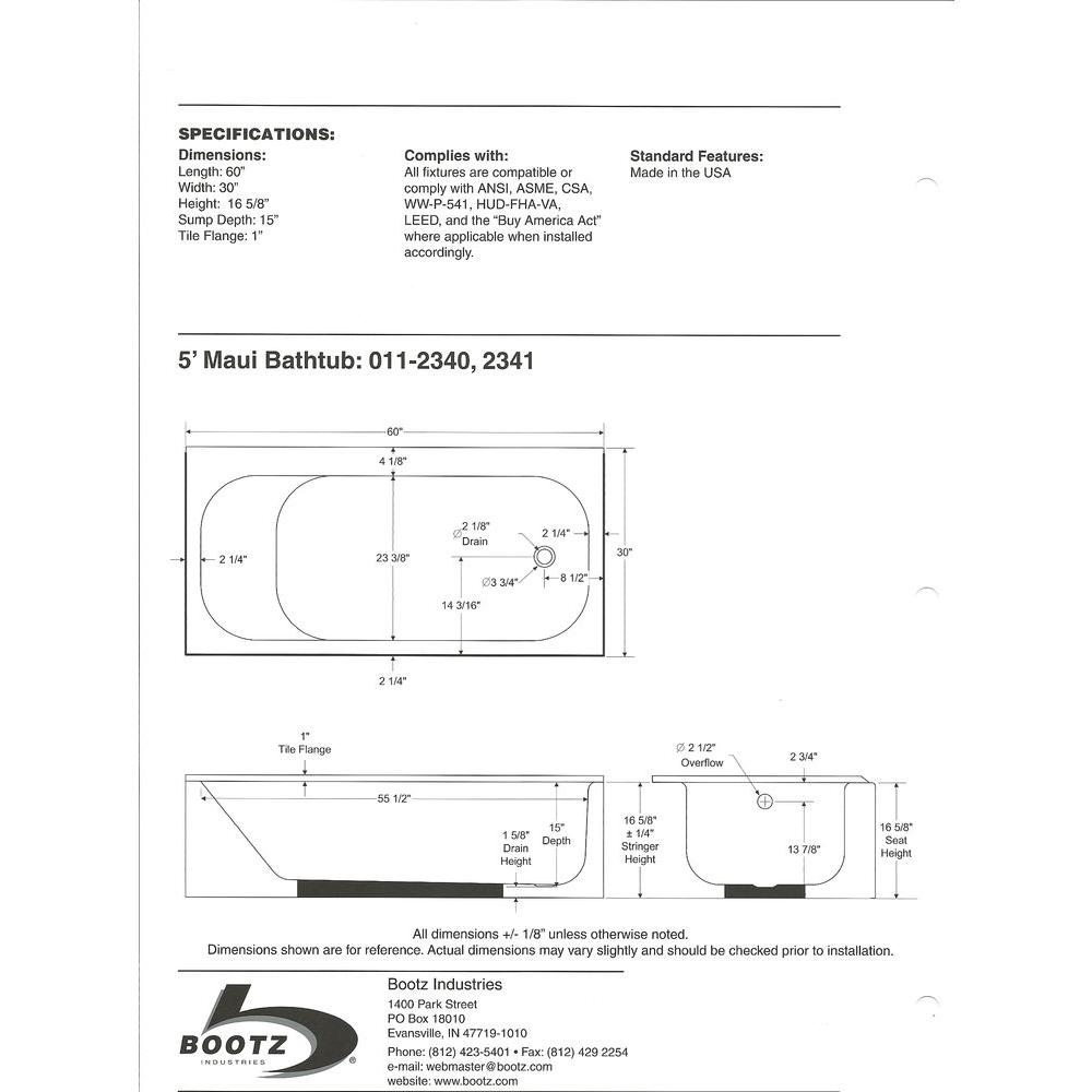 Bootz Industries Maui 60 In Left Drain Rectangular Alcove Soaking Bathtub In White 011 3341 00 The Home Depot
