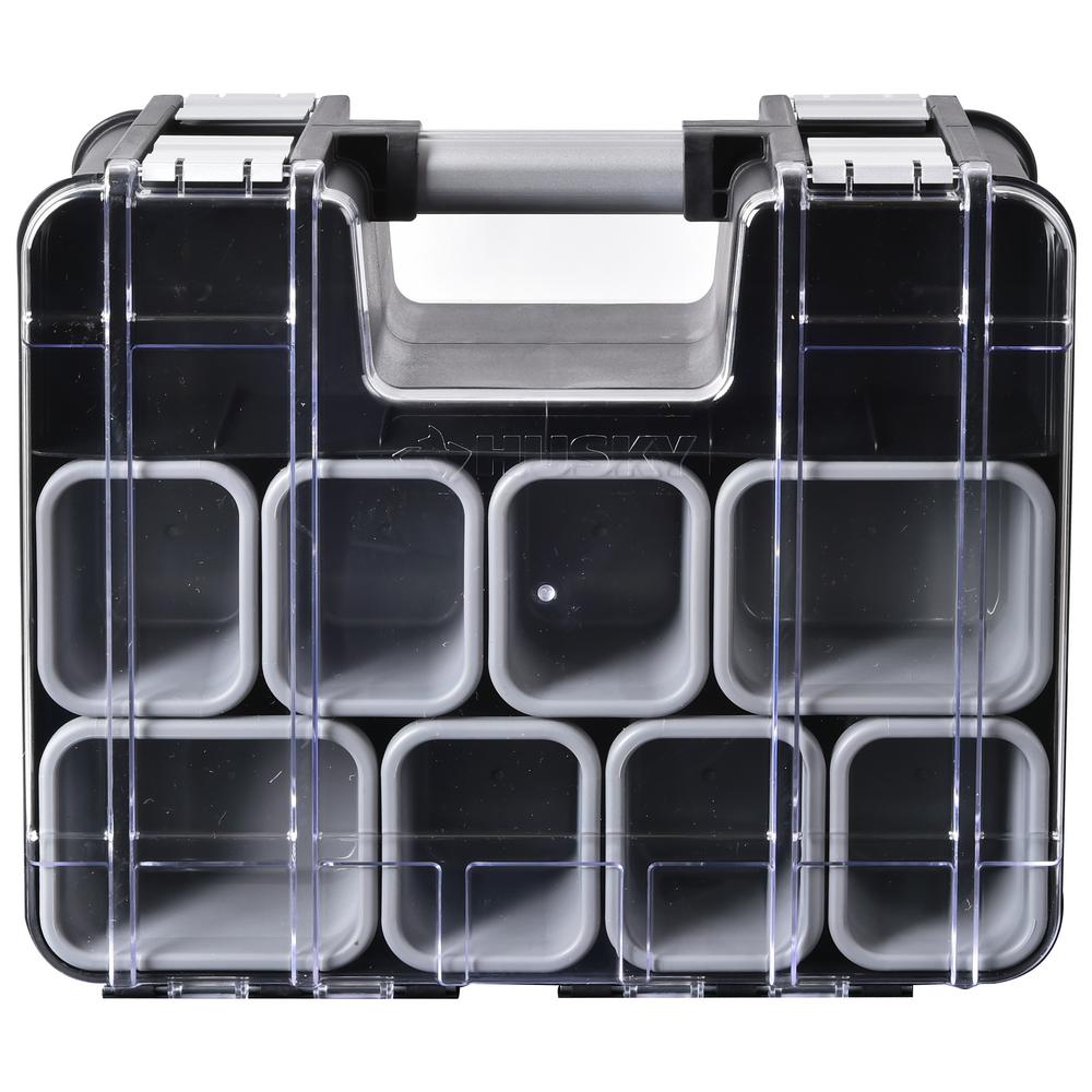 Husky 15 In X 13 In Black Pro Double Sided Small Parts Organizer With Bins 8 Piece Thd2015 03 The Home Depot