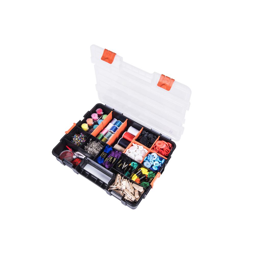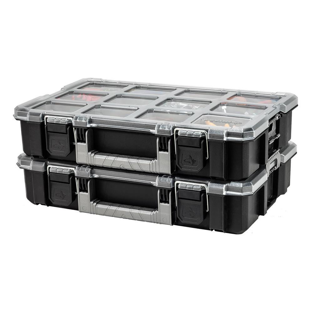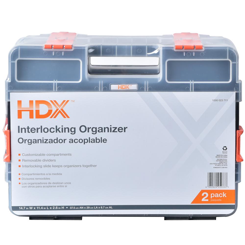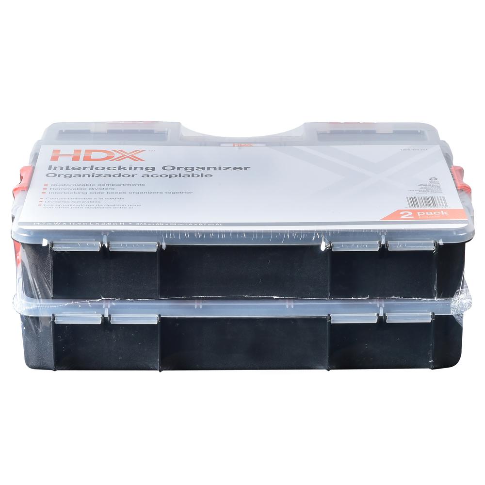 Hdx 15 Compartment Interlocking Small Parts Organizer In Black 2 Pack 320034 The Home Depot Tool Storage Portable Tool Box Small Parts Organizer