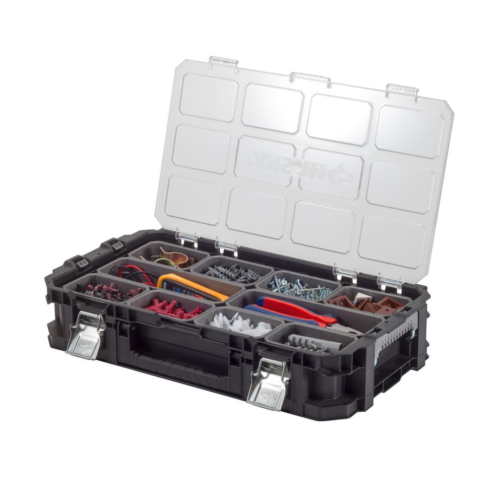 Husky 16 1 2 In 8 Bin Deep Pro Small Parts Organizer Black 218401 The Home Depot