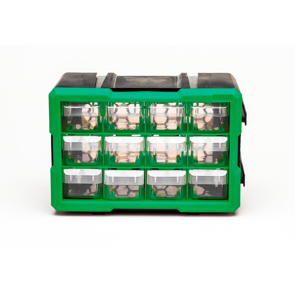 Steel Vision 12 Compartment Interlocking Small Parts Organizer Green Or Black 42003 The Home Depot