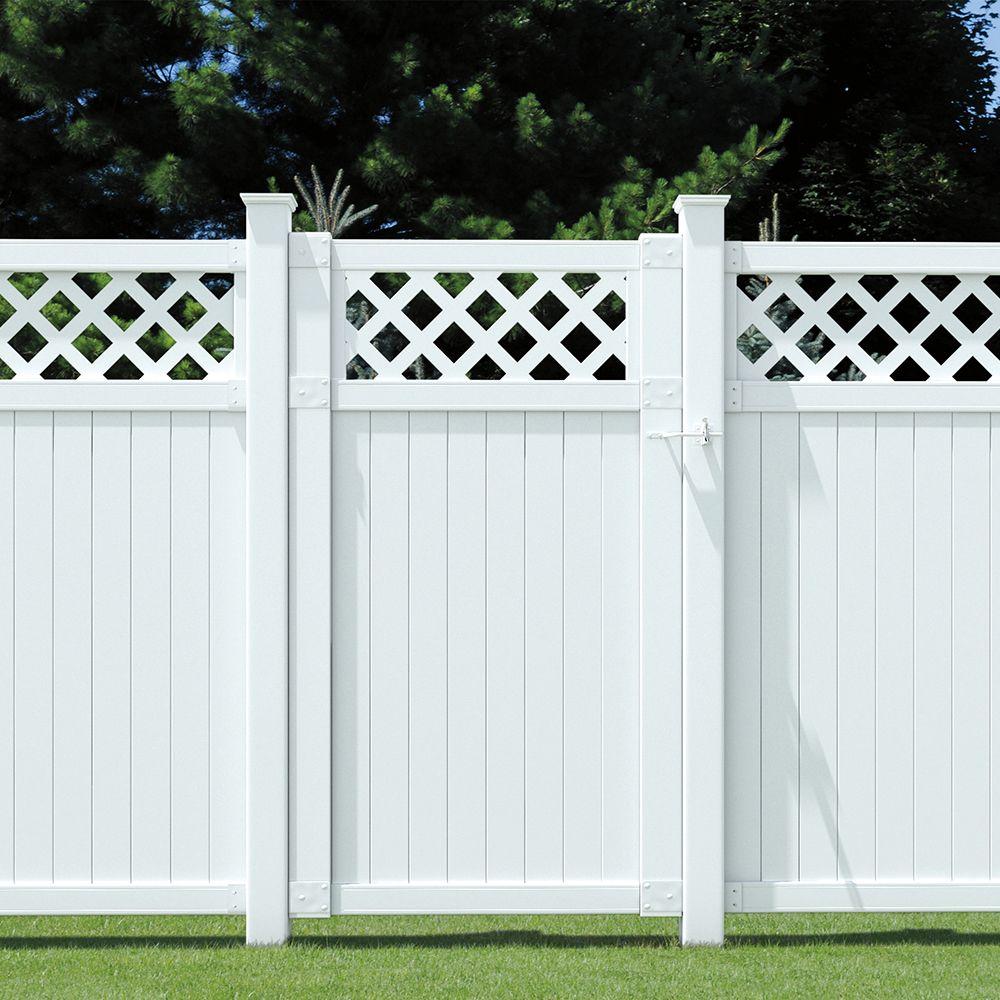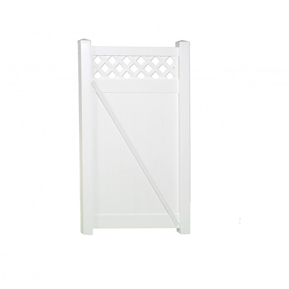 Veranda 3 1 2 Ft W X 6 Ft H White Vinyl Lewiston Lattice Top Fence Gate 181972 The Home Depot