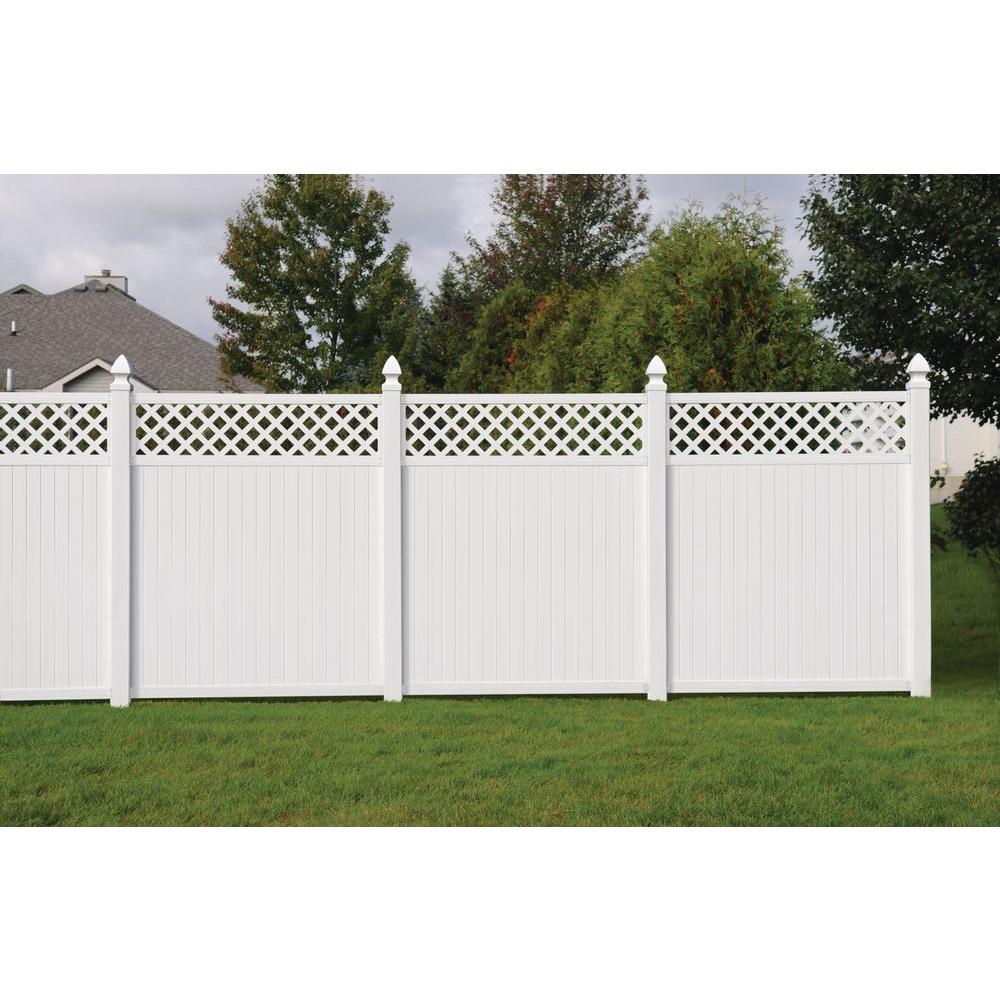 Weatherables Glenshire 6 Ft H X 8 Ft W White Vinyl Lattice Top Fence Panel Kit Pwpr Lat11 3 6x8 The Home Depot In 2020 Fence With Lattice Top Vinyl Fence Panels Vinyl Privacy Fence