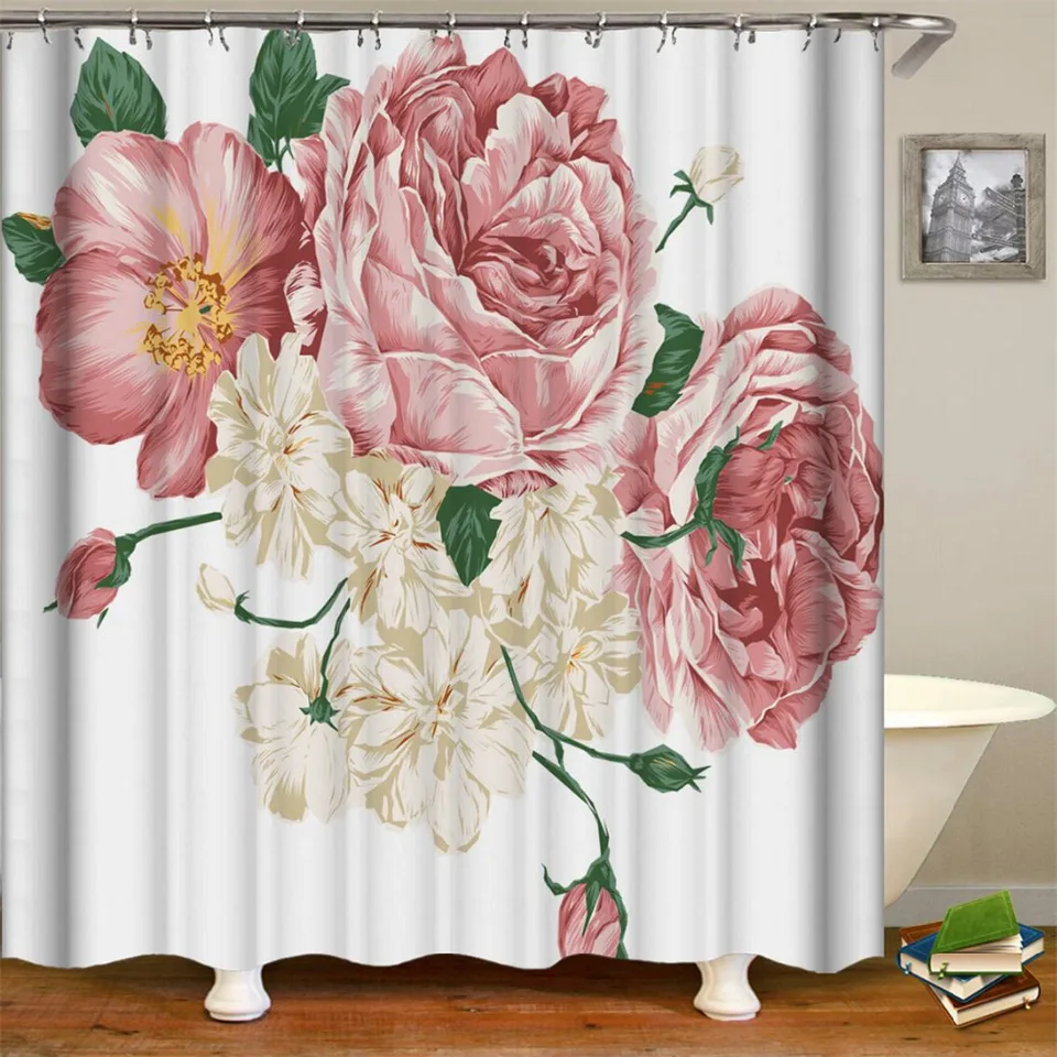 Online Shop Home Goods Beautiful Fabric Pink Floral Buds With Retro Effects Polyester Fabric Flowers Bathroom Set With Hooks Shower Curtain Aliexpress Mobile