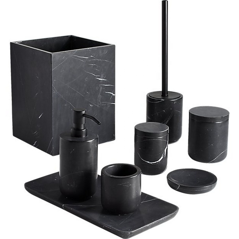 China Home Goods Luxury Custom 5 Star Hotel Natural Gray Black Marble Stone Bathroom Accessories Set For Resin Home Accessories Decor China Hotel Bathroom Accessories Set Modern Bathroom Accessories Set