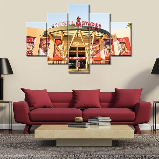 Amazon Com Angel Stadium Entrance Poster Canvas Wall Art Decor For Living Room 5 Panel Los Angeles Angels Baseball Player Posters Pictures Sports Painting For Home Decoration Framed Ready To Hang 60 Wx40 H Everything