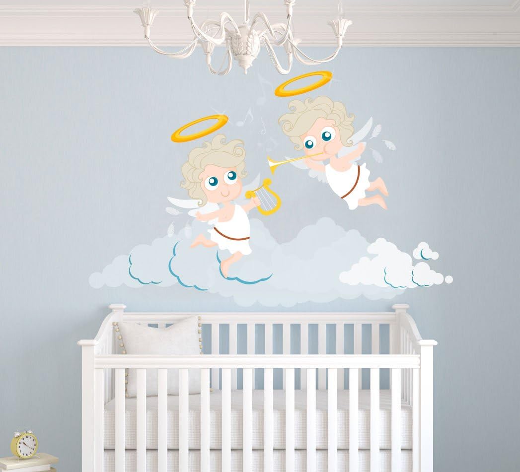 Amazon Com Singing Angels Flying In The Clouds Wall Decal Baby Nursery Decor For Home Interior Decoration Car Laptop M127n Wide 22 X 15 Height Home Kitchen