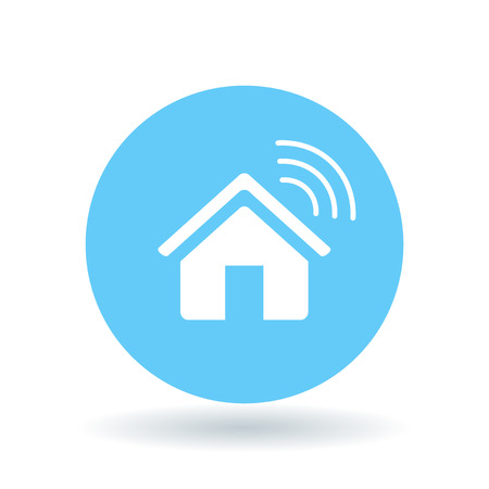 Smart Home Icon Wireless House Sign Home Automation App Symbol White Smart Home Icon On Blue Circle Background Vector Illustration Royalty Free Vector Graphics