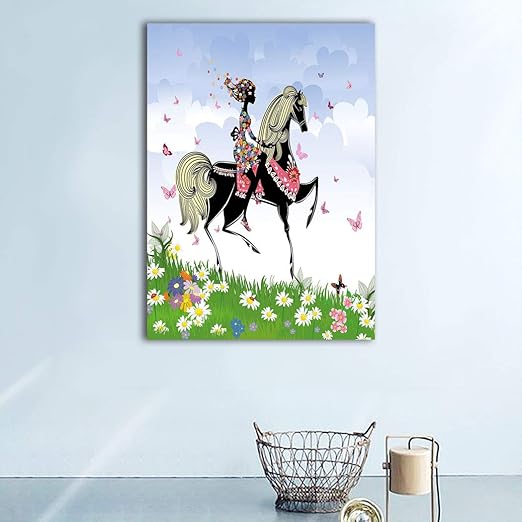 Amazon Com Sheetsare Horse Decor Art Poster Floral Girl Riding Pony In Fantasy Spring Field Butterflies Daisies Girls Room Art Mural Decoration 31 W X 35 Lmulticolor Posters Prints