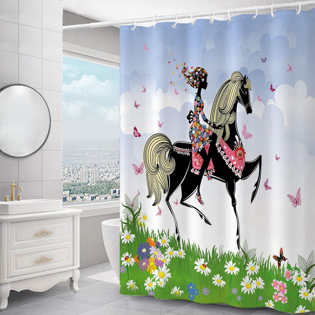 Amazon Com Horse Decor Custom Shower Curtain Floral Girl Riding Pony In Fantasy Spring Field Butterflies Daisies Girls Room Water Resistant Bathroom Curtain Liners 69 W X 84 Lmulticolor Home Kitchen