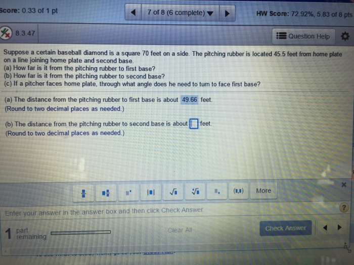 In T Ball The Distance To Each Successive Base Is 50 Feet If The Distance From Home Plate To The Brainly Com