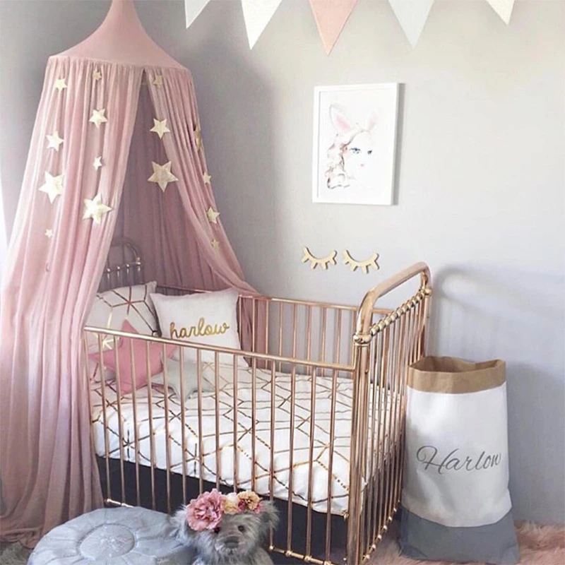 Pink Canopy Bed Curtains Baby Crib Mosquito Net With Free Star Decor Hanging Play Tent For Children Kids Girls Room Decoration Crib Netting Aliexpress