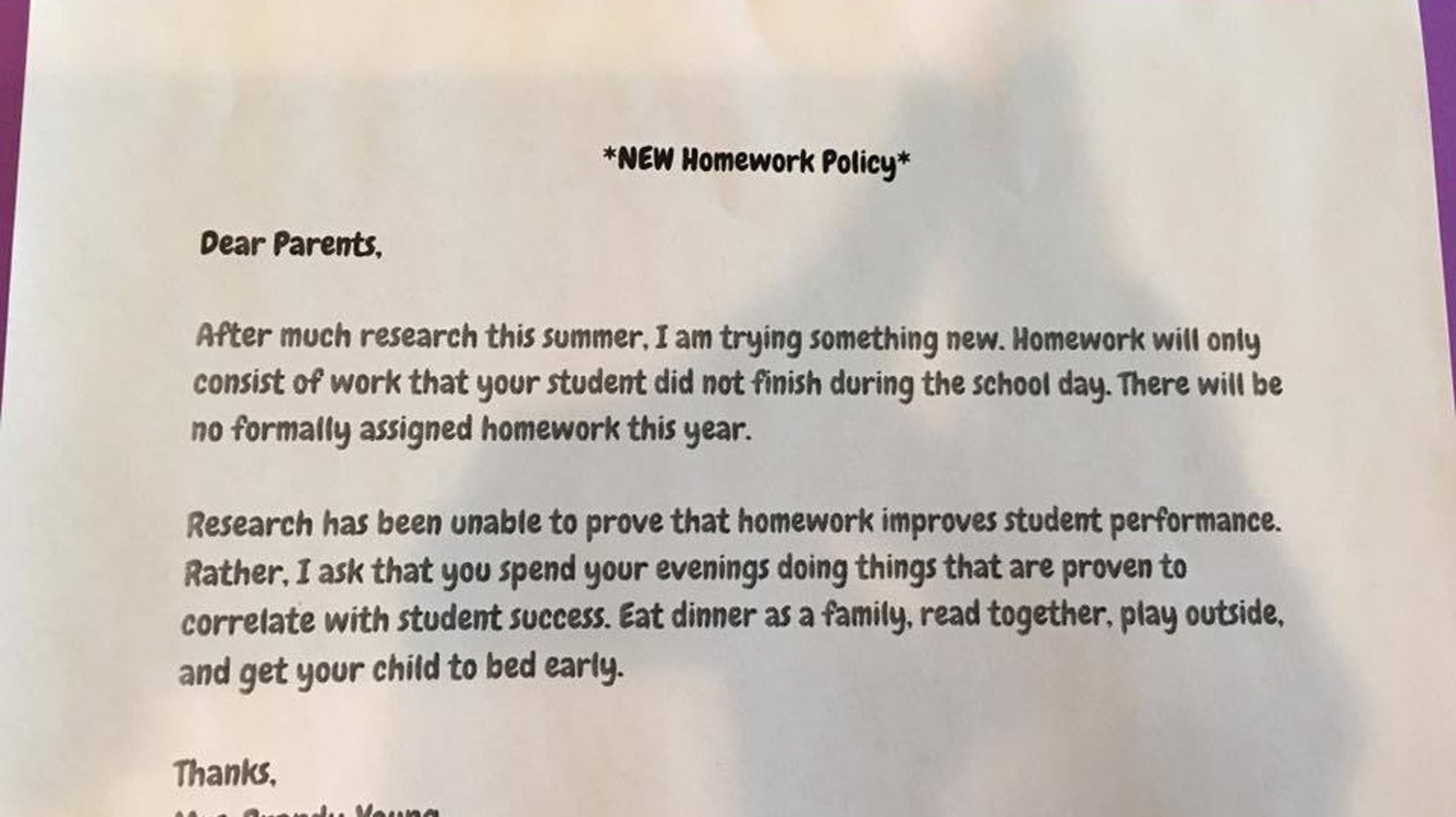Why I Did It The No Homework Letter Huffpost