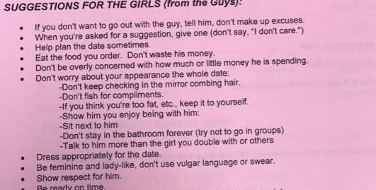 Homework Assignment Tells Girls To Be Lady Like And Go Out With A Boy Huffpost
