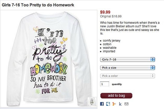 Jcpenney S Girls Are Too Pretty For Homework T Shirt Sends Worst Message Ever Update Huffpost