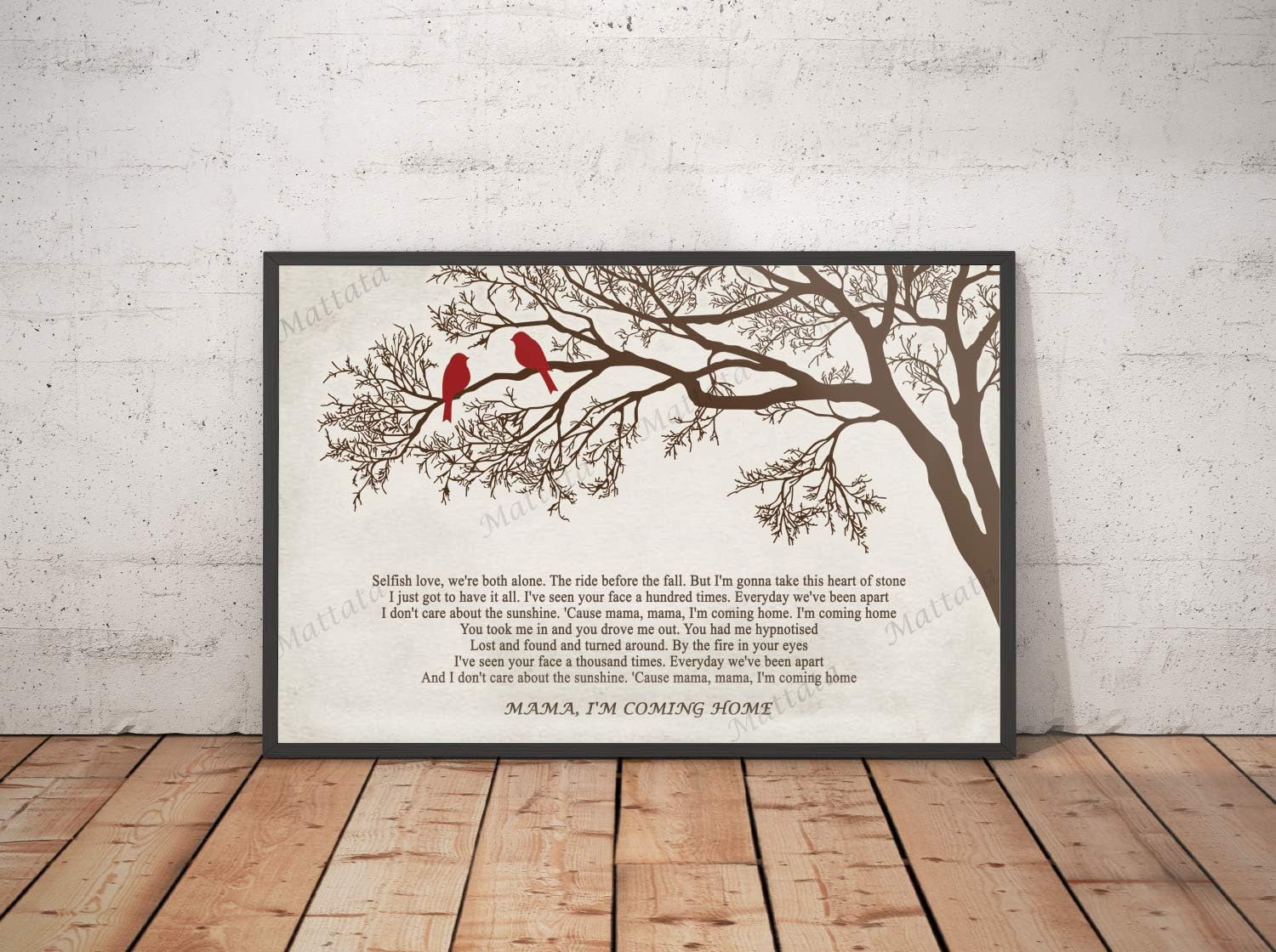 Amazon Com Mattata Decor Gift Mama Im Coming Home Song Lyrics Tree And Birds Landscape Poster Print 24 X 16 Kitchen Dining