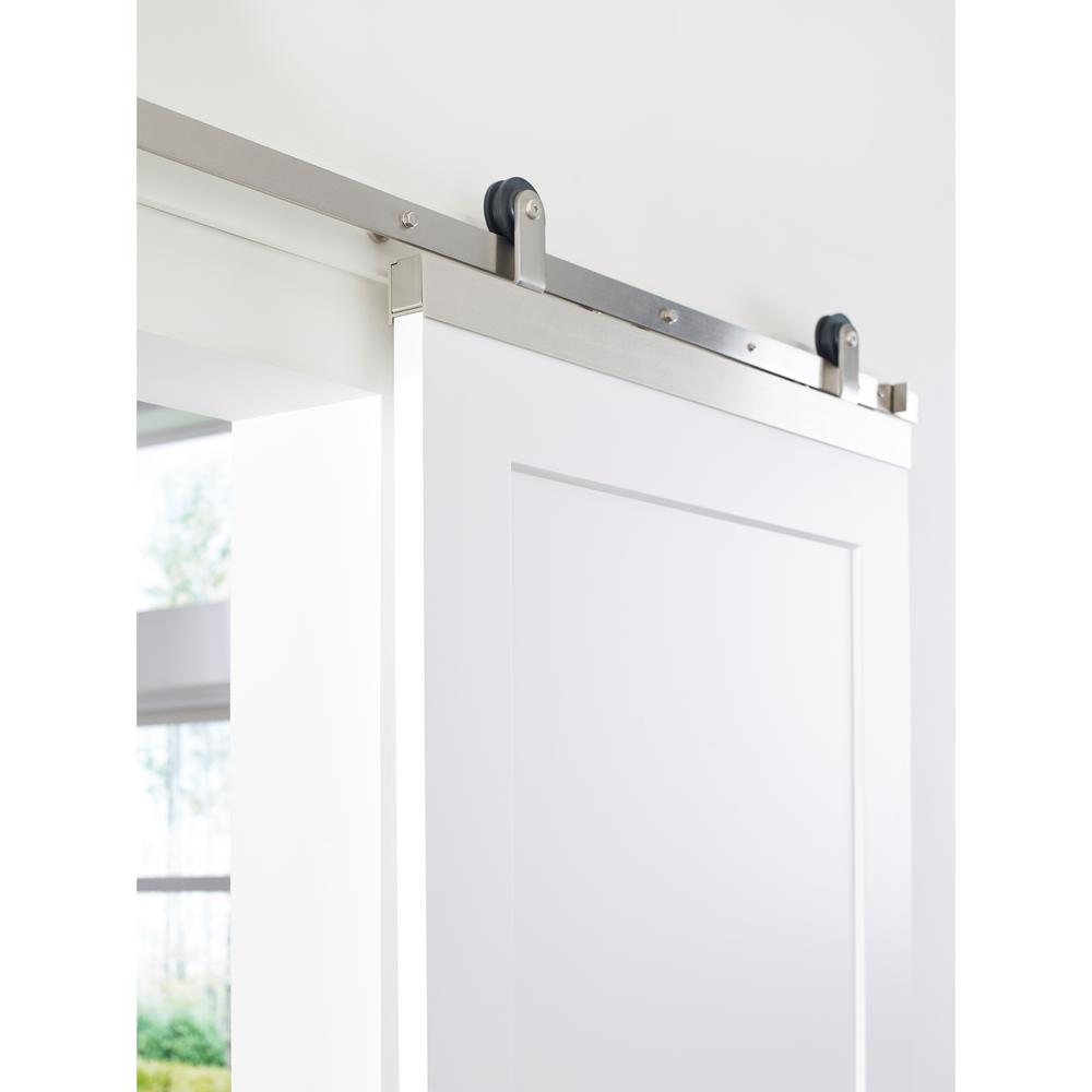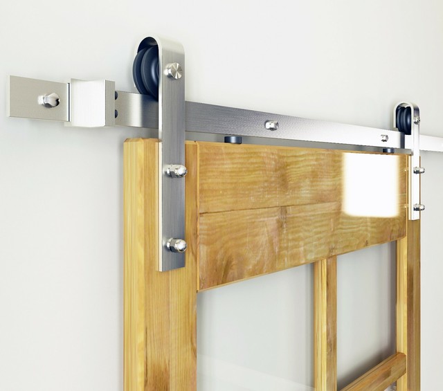 Flat Track Sliding Barn Door Hardware Modern Rectangular Face Mount 5 Track With Solid Wheel Flat Fastener In Brushed Stainless Steel Emtek Hardware B110105 Sd Ft Ss