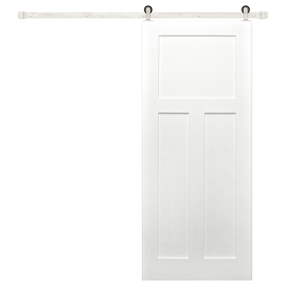 Pacific Entries 36 In X 80 In Shaker 3 Panel Primed Pine Interior Sliding Barn Door With Satin Nickel Hardware Kit P2235 3680 15 The Home Depot
