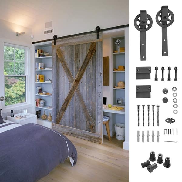 Ainfox 6 6ft Sliding Barn Door Hardware Kit Big Wheel Overstock 30364519