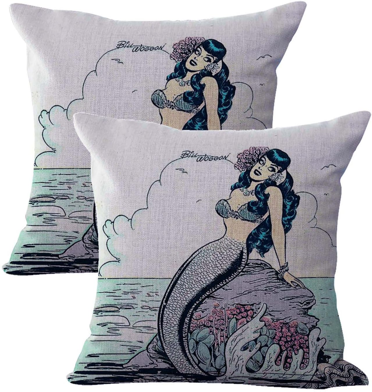 Amazon Com Set Of 2 Vintage Art Mermaid Cushion Cover Interior Decorating Jobs Home Kitchen