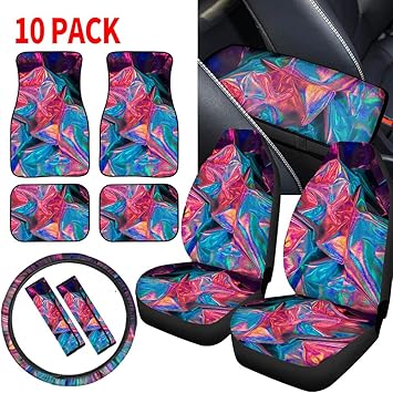 Amazon Com Horeset Cool Car Interior Decorations For Women Seat Covers For Car And Universal Car Steering Wheel Cover Center Console Armreset Cover Safety Belt Covers And Full Carpet Floor Mats Full Set Of 10