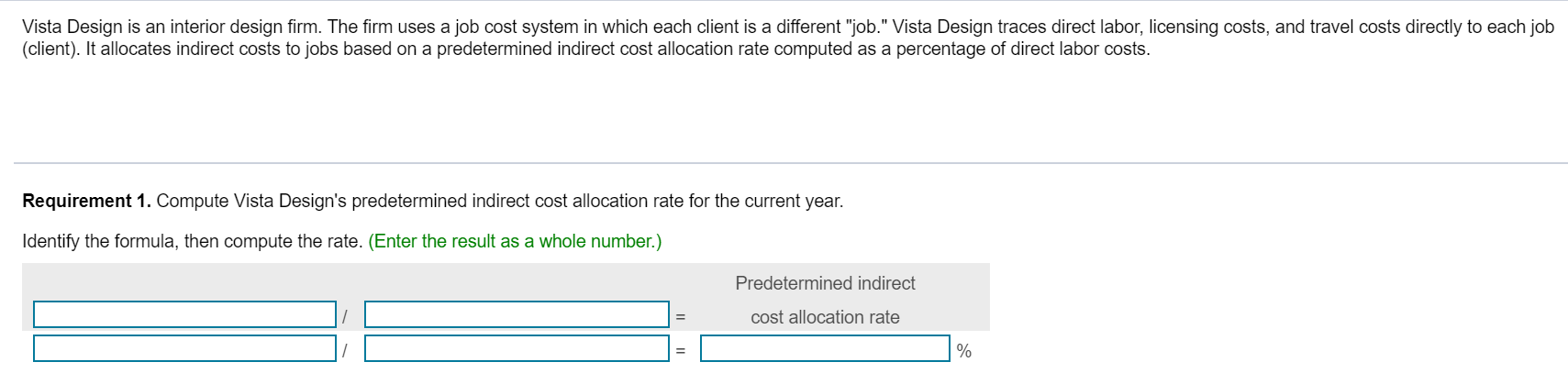 Solved Vista Design Is An Interior Design Firm The Firm Chegg Com