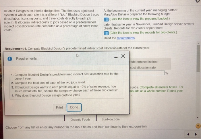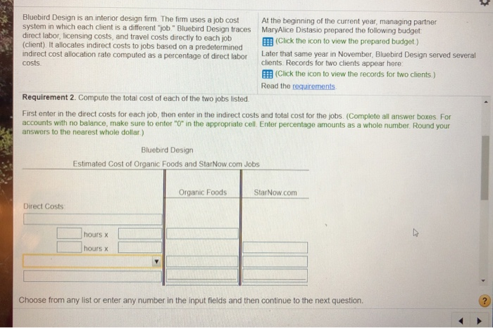 Solved Bluebird Design Is An Interior Design Firm The Fi Chegg Com
